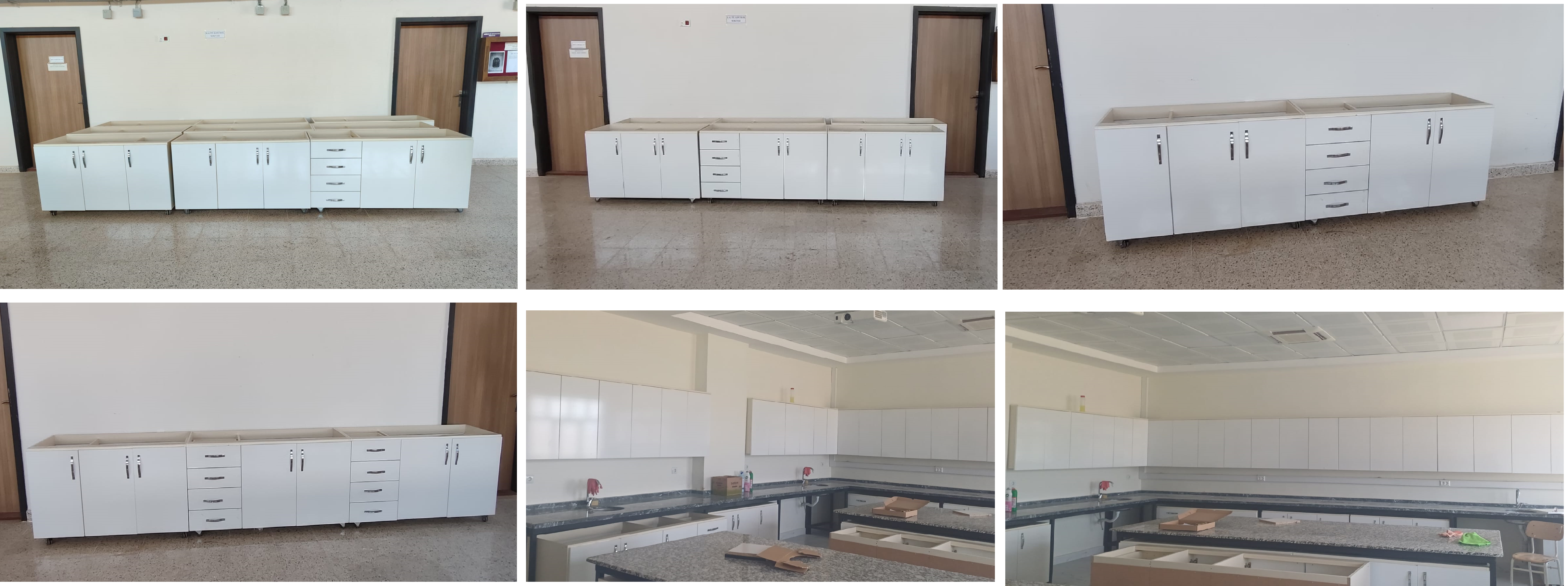 13.10.2025 - Mobilya ve Dekorasyon Programı uygulama atölyemizde, Gıda bölümü laboratuvarlarına 68 adet modül dolap üretilmiş ve teslim edilmiştir.